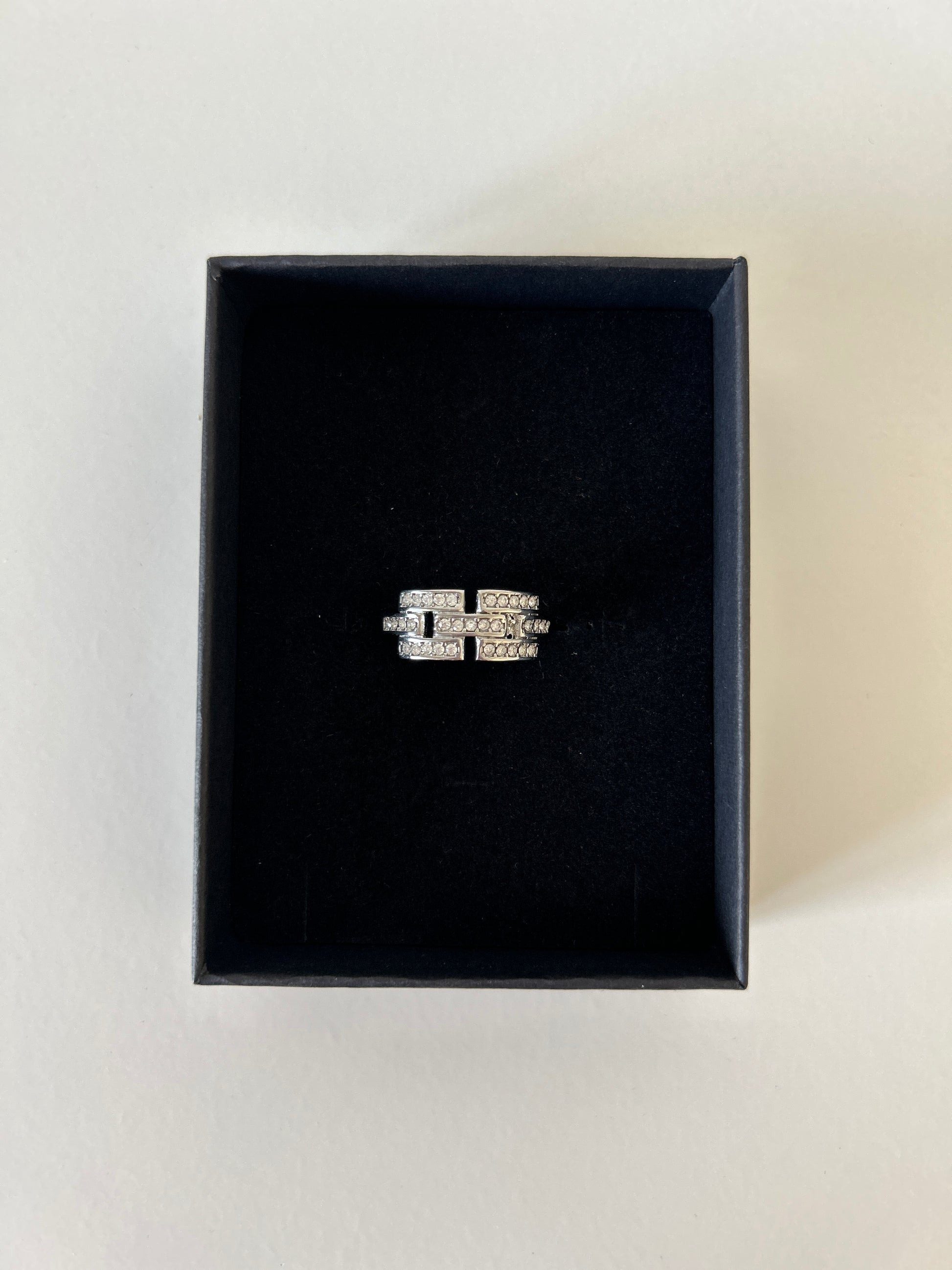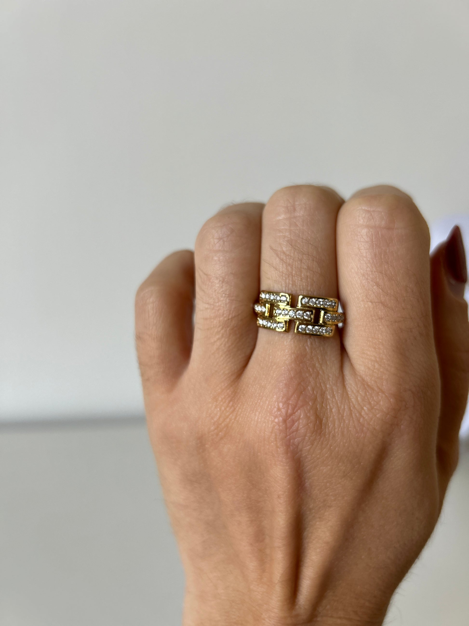 Questo elegante Anello Intreccio è realizzato in acciaio inossidabile di alta qualità e impreziosito da bellissimi cubic zirconia bianchi. La sua regolabilità invisibile lo rende perfetto per chi desidera un anello personalizzato e comodo da indossare. Aggiungi un tocco di classe al tuo look con questo anello unico.