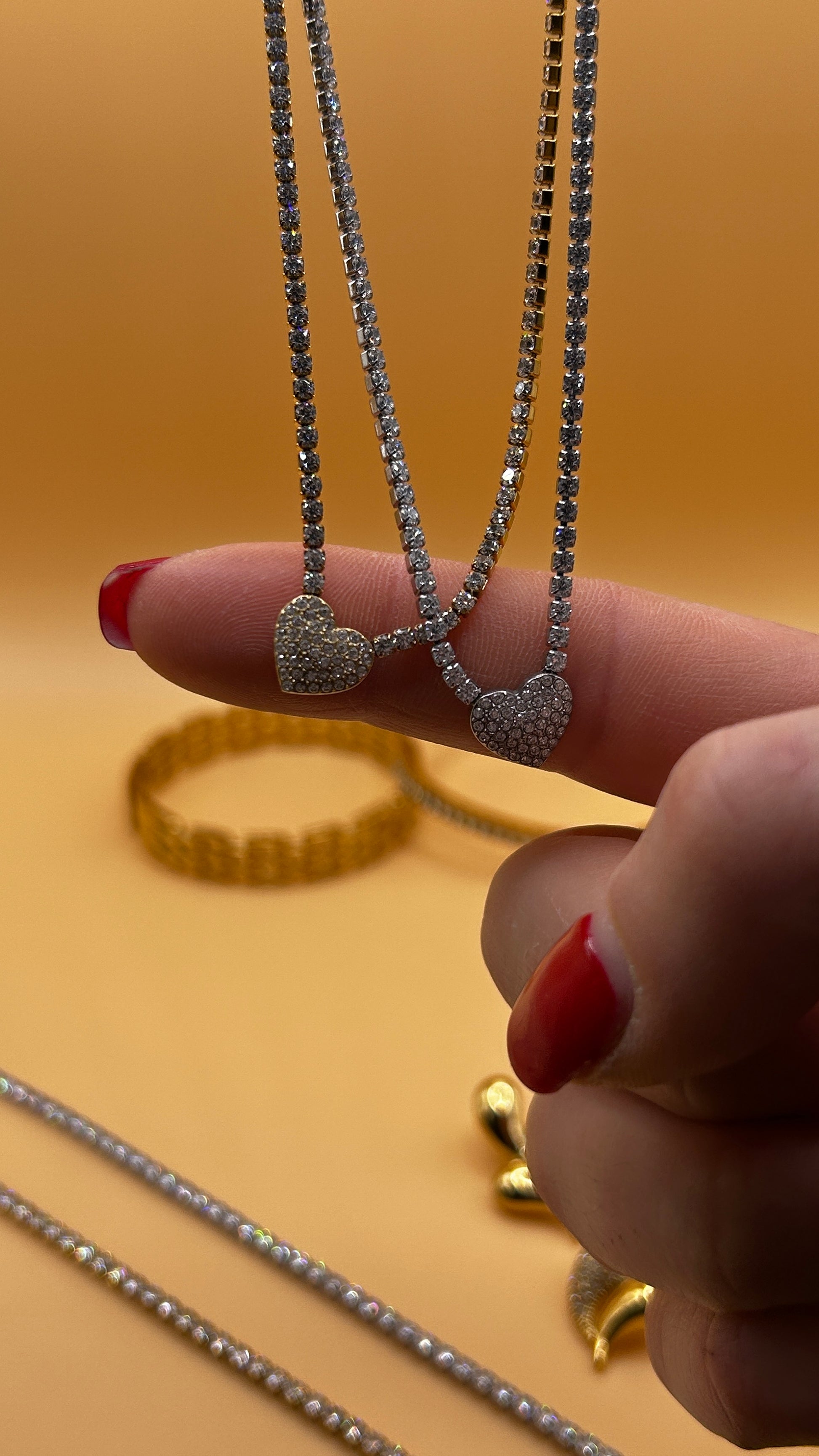 Collana Amore Puro è un elegante girocollo con un cuore pavé che simboleggia il puro amore. La chiusura regolabile con cursore in acciaio inossidabile garantisce una vestibilità perfetta, mentre le cubic zirconia aggiungono un tocco di brillantezza. Perfetta per dichiarare il tuo amore in modo raffinato e romantico.