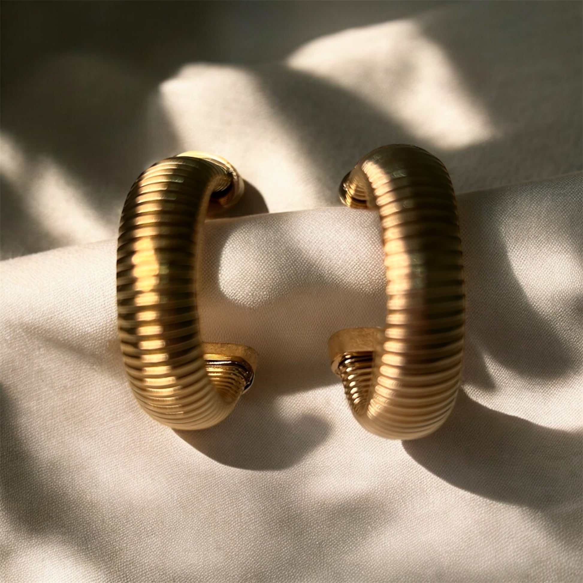 Gli orecchini Clara presentano un design bold rigato con chiusura a vitarella, offrendo una soluzione casual e stilosa per l'uso quotidiano. La loro struttura robusta garantisce durata, mentre il design unico consente di abbinarsi facilmente a vari outfit, rendendoli un accessorio versatile per ogni occasione.