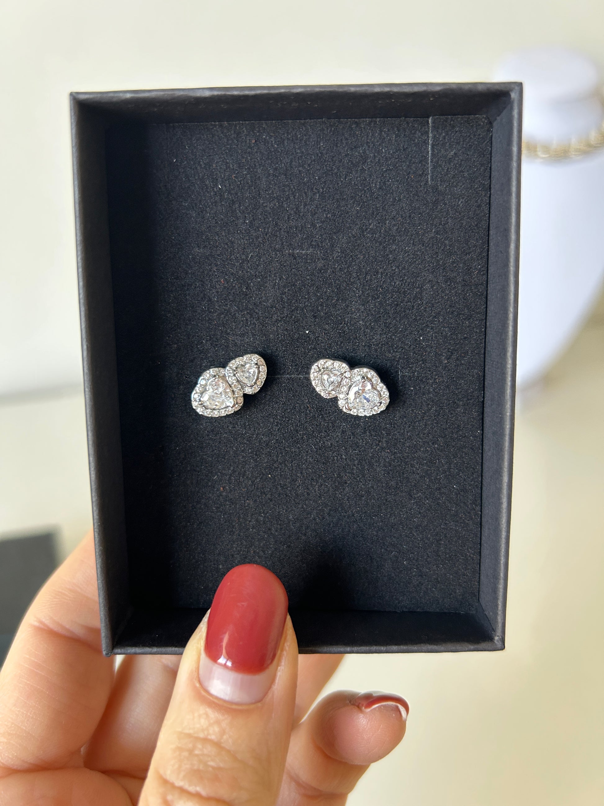 Orecchini DoubleLove in acciaio inossidabile e cubic zirconia per un look romantico e luminoso. Crea un set completo abbinandoli all'anello DoubleLove.